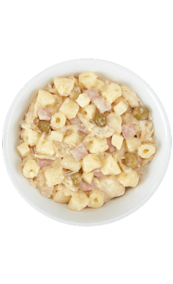 Alimento húmido completo e balanceado para cães adultos. Os filetes de frango são combinados com macarrão e saborosa carne de porco, além de ervilhas, queijo e ovos: uma refeição completa e equilibrada que se inspira no famoso e requintado prato de macarrão à carbonara, oferecendo ao seu cão a qualidade dos ingredientes em uma deliciosa combinação de sabores.