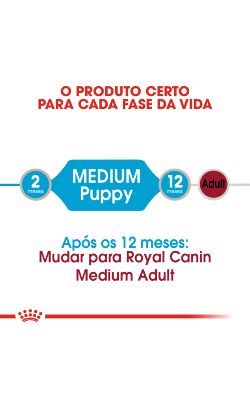 Indicado para cachorros até aos 12 meses de idade e que em adultos terão um peso entre 11 kg a 25 kg, o ROYAL CANIN® Medium Puppy em molho foi especificamente formulado tendo em conta as necessidades nutricionais do seu cachorro de porte médio.
