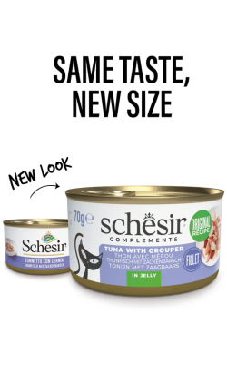 Alimento húmido para Gatos Schesir Cat Atum com Cherne em Gelatina | Wet (Lata)
