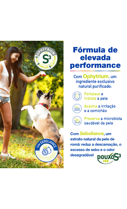 DOUXO S3 Seb Mousse contém Ophytrium para ajudar no tratamento e prevenção de todos os tipos de seborreia em gatos e cães com uma pele oleosa ou escamosa: reduz a descamação, o excesso de sebo e o odor desagradável graças à ação seboreguladora do Seboliance, ao mesmo tempo que hidrata e reestrutura o ecossistema cutâneo. Fortalece, ajuda a desembaraçar e deixa o pelo macio e brilhante.