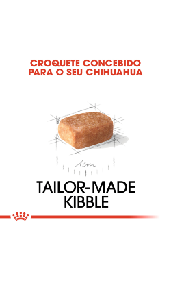 O exclusivo e personalizado croquete do ROYAL CANIN® Chihuahua Puppy foi especificamente adaptado às pequenas mandíbulas dos cachorros Chihuahua, para facilitar a ingestão e mastigação do alimento.